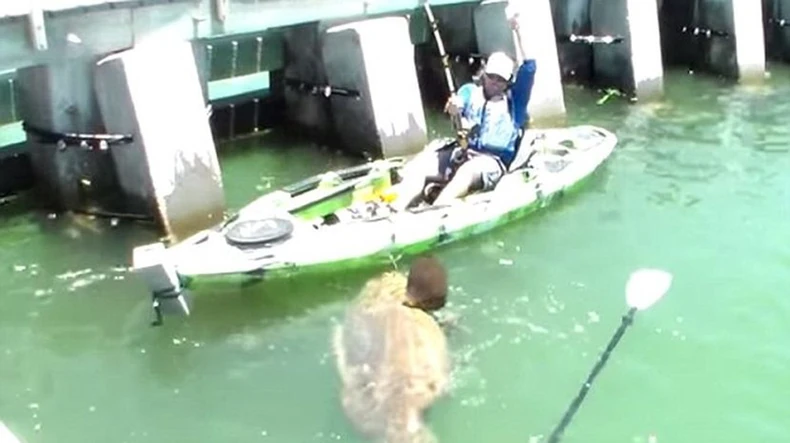 Džon Blek je upecao ogromnu ribu dok je u svom kajaku pecao u Sanibelu u Floridi. A riba mu, naravno, nimalo nije olakšala posao. Tom prilikom napravljen je snimak na kom se vidi njegova borba s ribom od 250 kilograma.