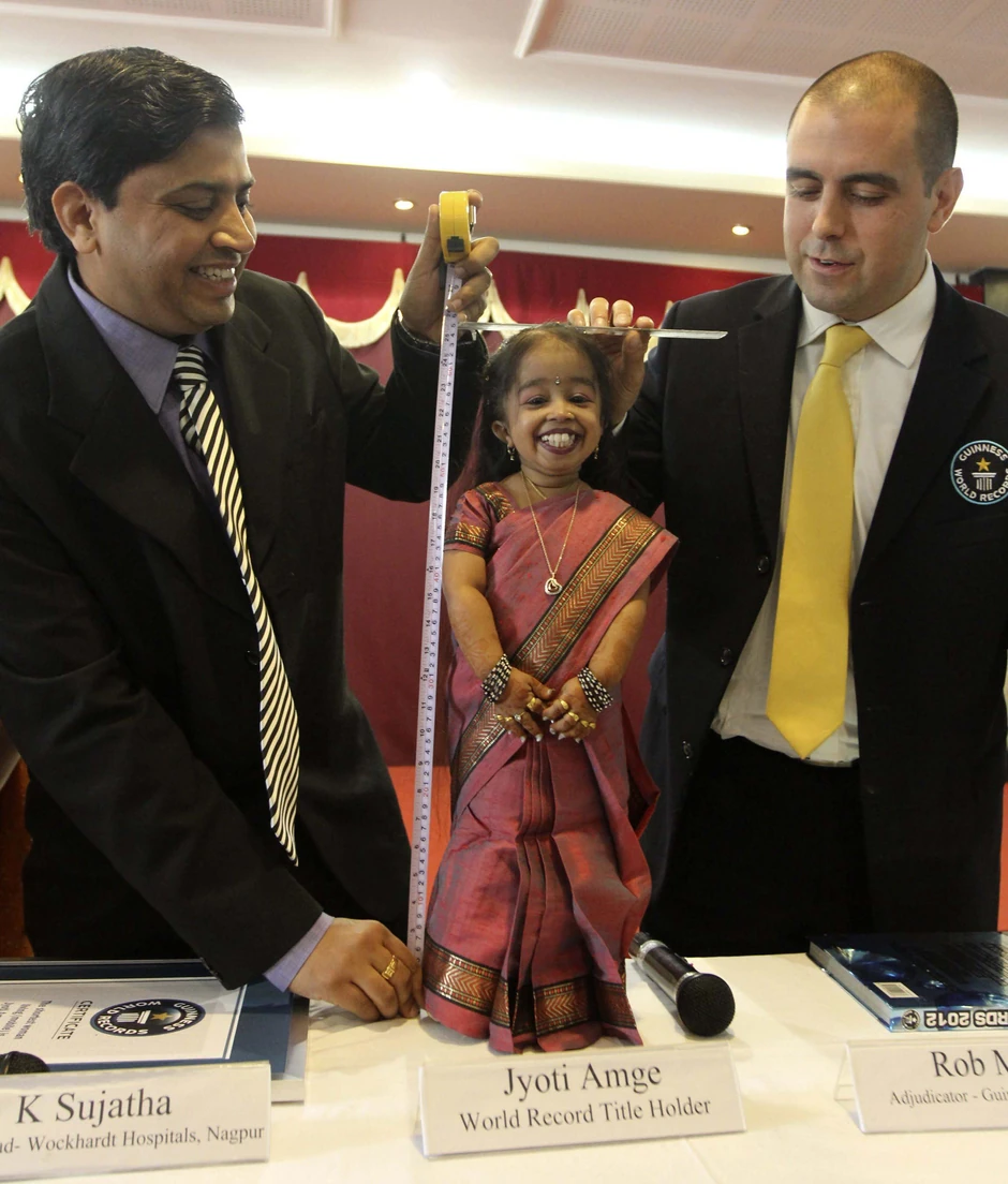 Predstavnici Ginisa izmerili su danas Joti Amge, čija je visina 62,8 centimetara - što je sedam centimetara manje od 22-godišnje Amerikanke koja je tu titulu držala od septembra.