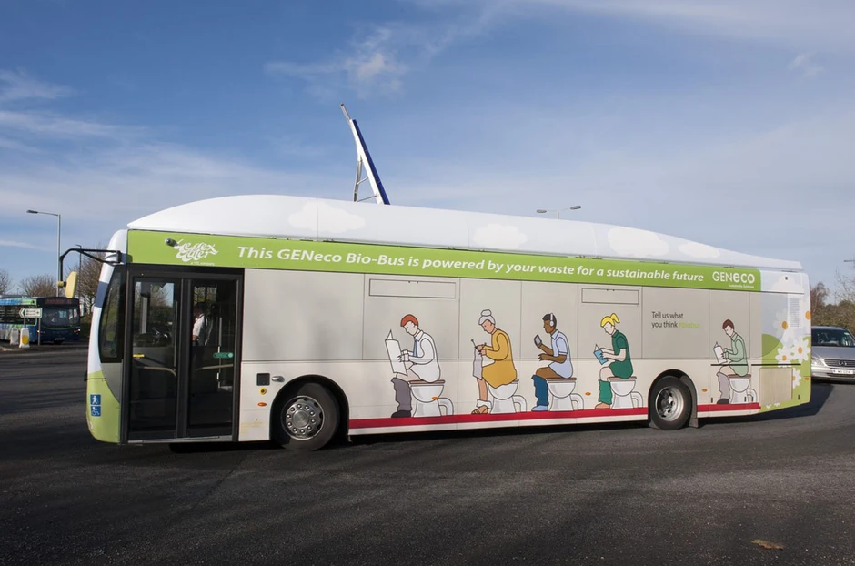 "Bio autobus" koji ide na gas biometan, za maršutu od 24 kilometara potroši izmet iz oko 32.000 domaćinstava. Ovaj autobus dopunjuje svoje gorivo u postrojenju u Avonmautu, gde se kanalizacija i nejestiva hrana pretvaraju u biometan.
