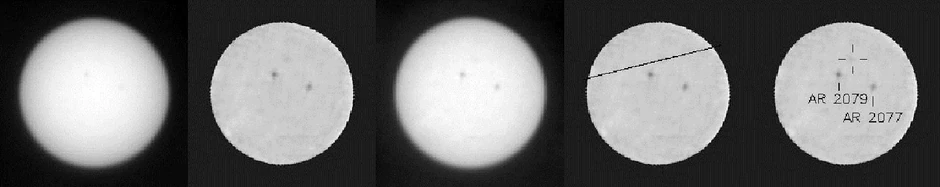 Merkur na fotografijama izgleda kao mutna, tamna tačka, veličine jedne šestine piksela. Takođe su vidljive i dve sunčeve pege, velike otprilike kao Zemlja, koje se kreću mnogo sporije od Merkura (sunčeve pege putuju brzinom sunčeve rotacije, dok Merkur prolazi brže ispred zvezde).