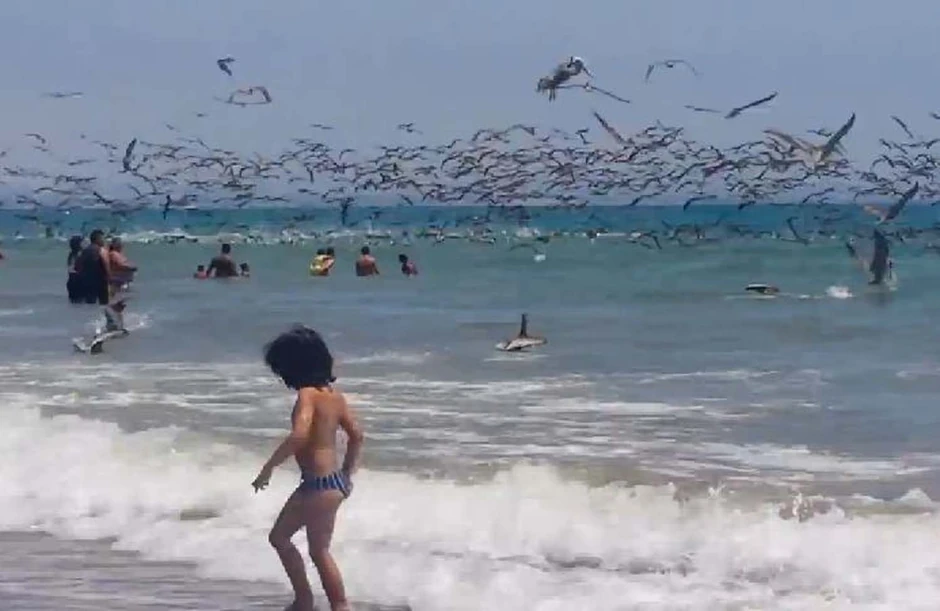Jedan sasvom običan dan na plaži u Ekvadoru se iznenada pretvorio u scenu iz Hičkokovih filmova. Dok su turisti uživali u kupanju i sunčanju stiglo je iznenađenje sa neba.