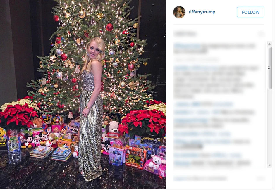 Tifani Tramp, ćerka Donalda Trampa, za Instagram je pozirala pored gomile poklona postavljenih ispod ogromne božićne jelke.