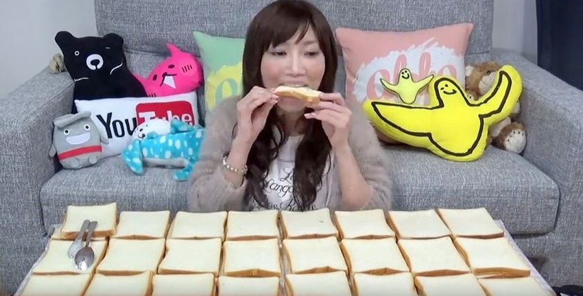Popularna japanska jutjuberka Juka Kinošita redovno postavlja video klipove u kojima ispunjava neverovatne izazove sa hranom. Jedan od njenih poslednjih eksperimenata je jedenje 100 kriški tost hleba mazanih raznim prelivima čime je u sebe za kratko vreme unela čak 10.000 kalorija..