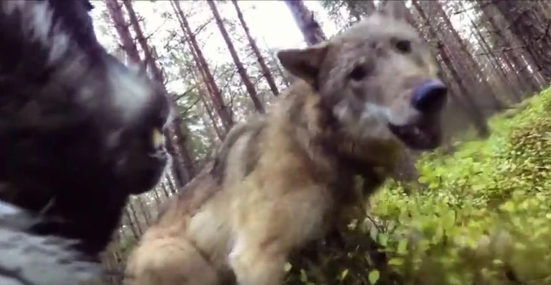 U jednoj šumi u Švedskoj uhvaćen je dramatični trenutak kada je pas napadnut od strane dva vuka. Pas je sve vreme nosio GoPro kameru na glavi, te je ceo incident snimljen.