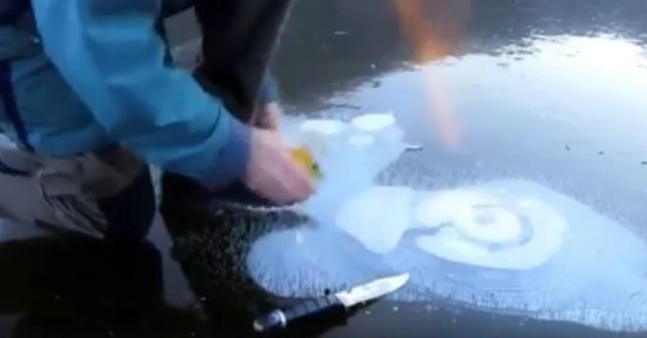 VIDEO - Pogledajte kako je Run Peterson izveo eksperiment sa metanom, isekavši rupu u ledu, nakon čega je zapalio vatru: