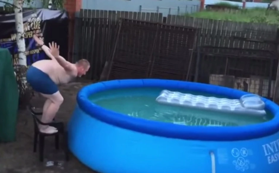 Ovaj čovek je želeo da snimi svoje "epsko" skakanje u bazen na naduvavanje a uspeo je samo da napravi epski promašaj.