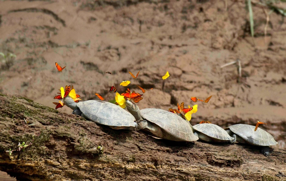 Fotografi su uspeli da zabeleže fenomen koji se u prirodi dešava prilično često, ali čovek gotovo nikad nije njegov svedok. Jato leptirića uslikano je kako pije suze iz kornjačinih očiju.