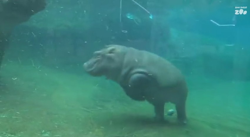 U zoo vrtu u San Dijegu, posetioci su snimili simpatičan prizor. Mali nilski konj ludo se zabavljao praveći piruete i prosto uživajući u igri, što je posebno oduševilo prisutnu decu. Ova scena neodoljivo podseća na čuvenog nilskog konja baletana iz Diznijevog crtanog filma "Fantazija".