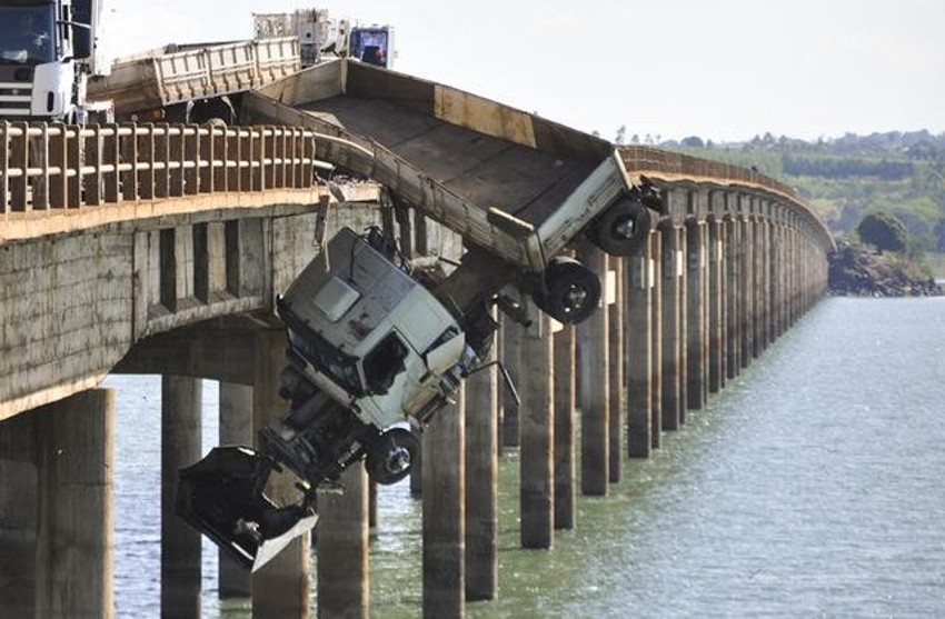 Jedan brazilski vozač spasen je iz kamiona koji je nakon incidenta naglo skrenuo, srušio ogradu i skoro pao sa mosta, sa samo jednom prikolicom koja ga je držala na putu.