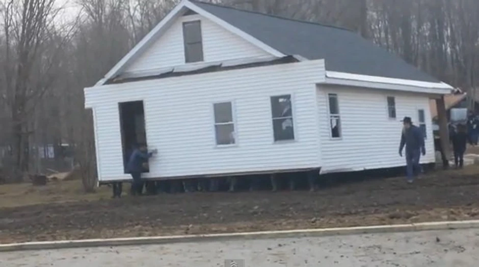 Snimak zabeležen u Spartansburgu u Pensilvaniji pokazuje kako 80 muškaraca doslovno podižu kuću i premeštaju je na betonsku ploču.