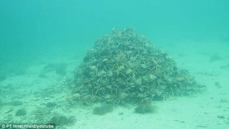 Ogromne pauk-krabe su snimljene kod mola u gradu Blergovri na jugu australijske države Viktorija, gde su ronili Hiršfild i njeni prijatelji.