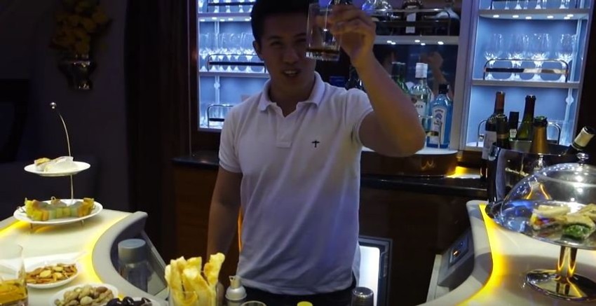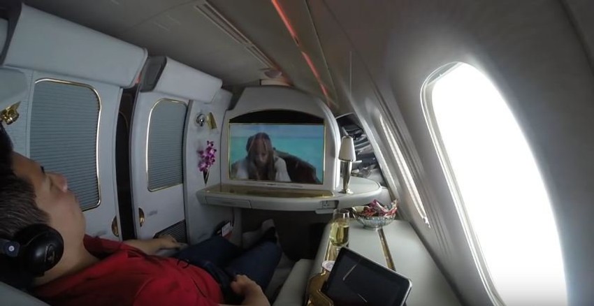 Ono što ga je posebno oduševilo je privatna "soba" u avionu, sa vratima koja se automatski zatvaraju, kao i neograničena vrhunska hrana i pića. Stjuardesa ga je posle ručka obavestila da može da uživa i u njihovom mini spa centru u avionu, gde može da se istušira i osveži, što je za njega bilo neponovljivo iskustvo.