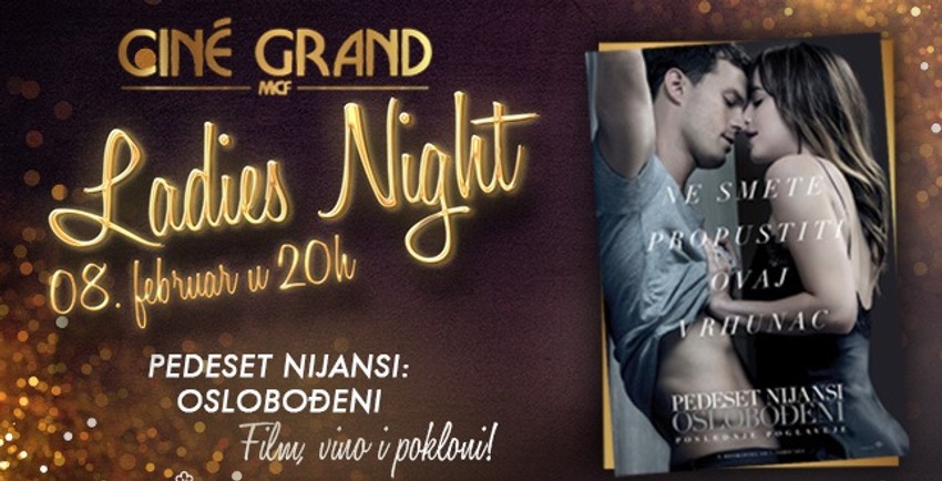 U četvrtak, 8. februara, u bioskopu Cine Grand Capitol Park Rakovica, biće održan "Ladies Night", uz projekciju trećeg nastavka planetarno popularnog ostvarenja "Pedeset nijansi - Oslobođeni". Početak projekcije je u 20 časova, a ulaznice za ovaj događaj su u prodaji i mogu se kupiti na blagajni bioskopa, takođe ulaznice možete rezervisati i na sajtu bioskopa Cine Grand!