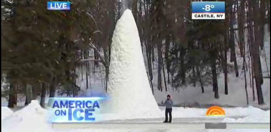Talas ekstremno niskih temperatura koji je ledom okovao severoistočne delove Sjedinjenih Država je na mnogim mestima stvorio prava mala umetnička dela. Za ovo "umetničko delo" ne možemo da kažemo da je malo, pošto je reč o "ledenom vulkanu" koji je za sada visok oko petnaest metara sa tendencijom daljeg rasta.