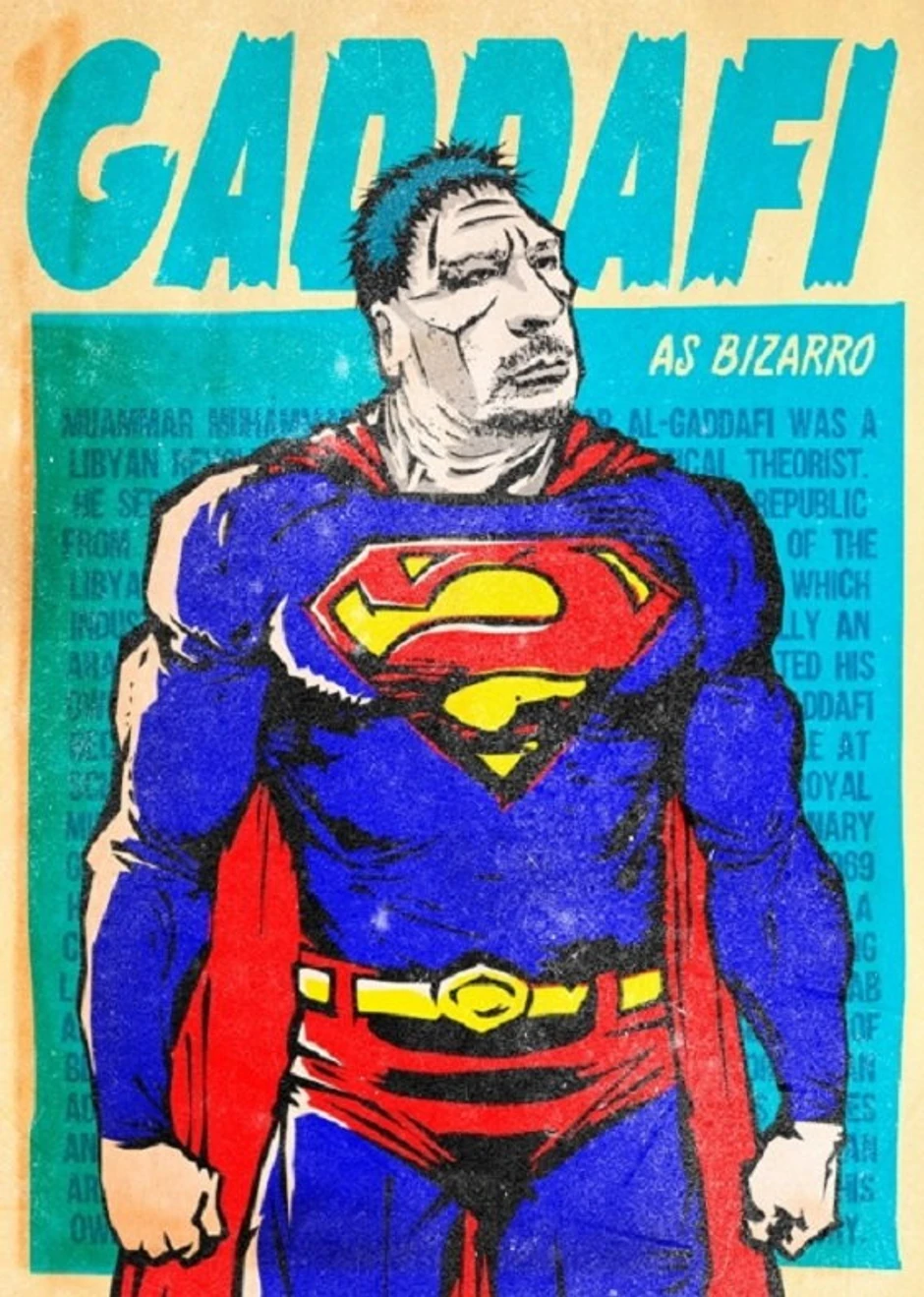 Da Luz: “Izopačena varijanta Supermena iz paralelenog sveta, poznatijeg kao Bizaro, ima zatrašujuće četvrtasto lice i ne mogu da zamislim drugog čoveka koji bi više ličio na njega od zaista ‘bizarnog’ bivšeg libijskog diktatora.”