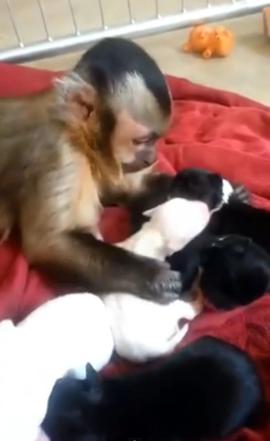 Sigurno ste se mnogo puta uverili da ljubav nema granice, ali ovo majmunče je još jedan živi dokaz za to. Način na koji se ono ophodilo prema štencima više je nego sladak.