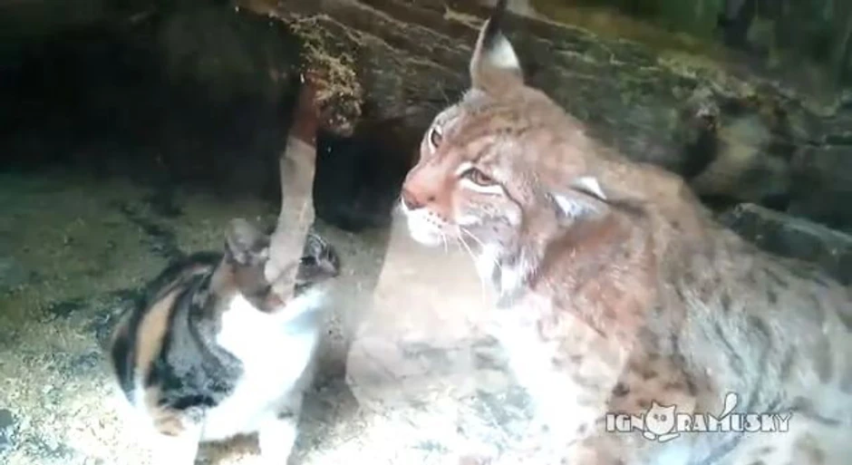 Jedna domaća mačka je zalutala u zoološki vrt i stekla prijatelja, mnogo veću mačku - risa.