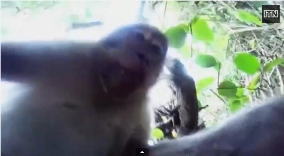 Međutim, majmun je držao kameru dovoljno dugo da bi je uperio u sebe i snimio se.