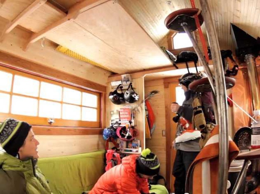 Zek Grifin i njegova četiri prijatelja, su odlučili da odu na ski turneju po državi, te su za potrebe puta, dizajnirali i pokretni dom od 10 kvadrata, koji ih je pratio. Mini-kuća sadrži krevet za dvoje, i kauč na razvlačenje.