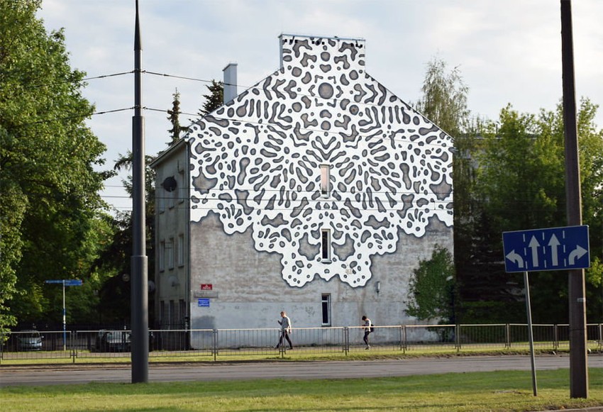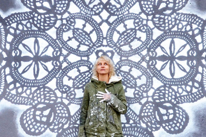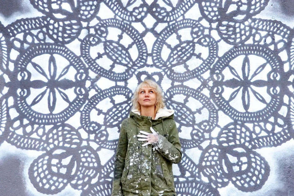 Umetnica iz Varšave, poznata pod pseudonimom "NeSpoon", inspiraciju za svoja umetnička dela crpi iz simetrije i harmonije tradicionalne čipke - miljea, čije uzorke štampa, plete, pravi od gline, slika po zidovima.