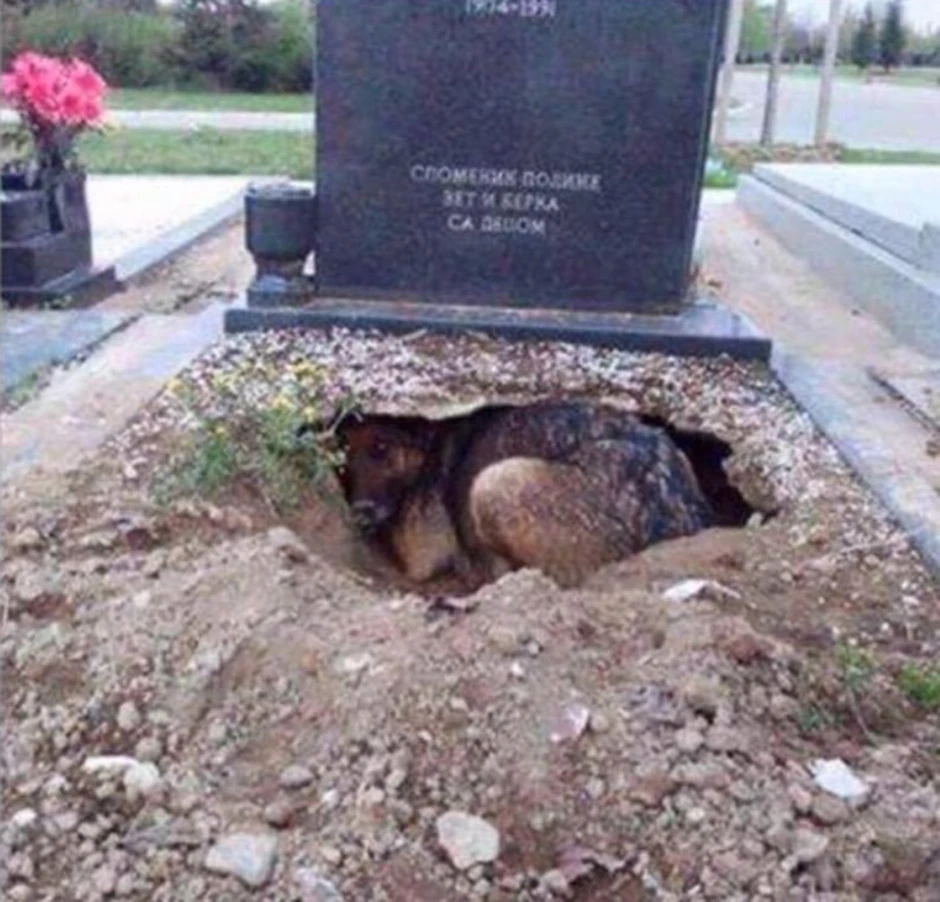 Kada se fotografija psa na grobu pojavila i počela da kruži internetom, svi su zaključili da je na grobu svoje pokojne vlasnice. Ali grob na kom je iskopala rupu nije pripadao njenoj vlasnici, niti je ona zbog njega boravila na njemu.