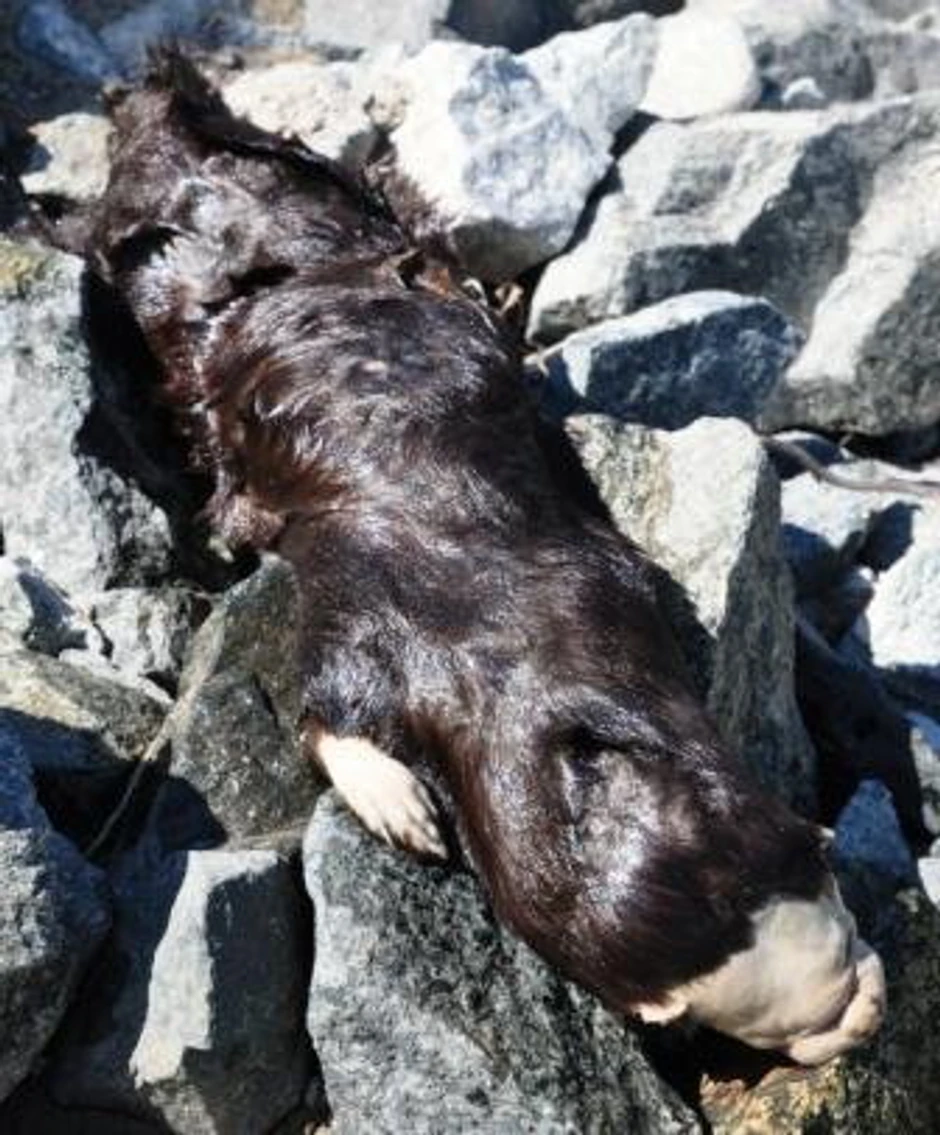 Pas je njuškao pored jezera, a zatim skočio u jezero i iz njega izvukao telo neobične životinje na stene.