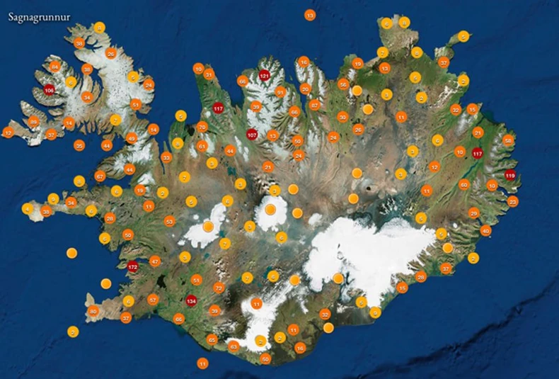 Fondacija Saga sa Islanda je, povezujući narodne priče sa motivima o "skrivenim ljudim" i određene lokacije, objavila mapu. Ako se zumira bilo koji ugao mape, može se videti gusta mreža priča i legendi o skrivenim ljudima, koje se protežu po svim nenaseljenim delovima ostrva.