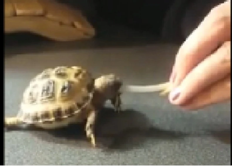 Bebi kornjačica Teri neustrašivo se suprotsavila boraniji, koju je uspela da pojede celu i to u jednom cugu! Iako na snimku izgleda kao da boranija jede kornjaču, a ne obrnuto, jasno je ko je pobedio u ovom okršaju.