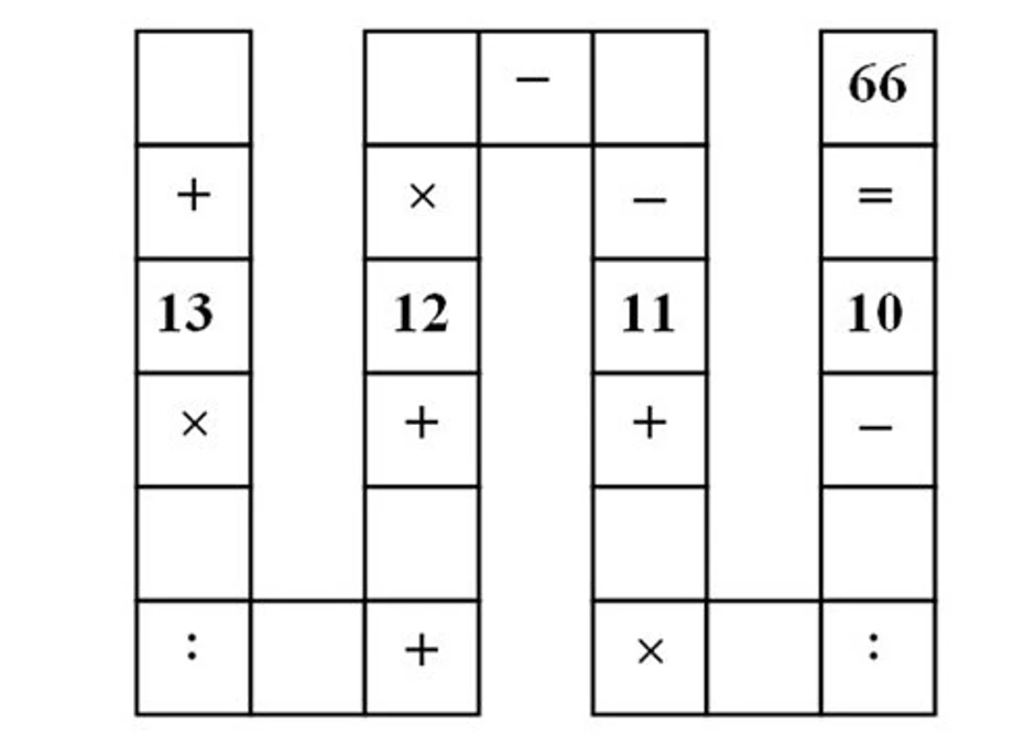 Zadatak je prikazan na crtežu iznad. U prazna polja deca treba da upišu brojeve od 1 do 9 kako bi jednačina imala smisla, prateći sve vreme računske operacije - sabiranje, množenje, deljenje i oduzimanje.