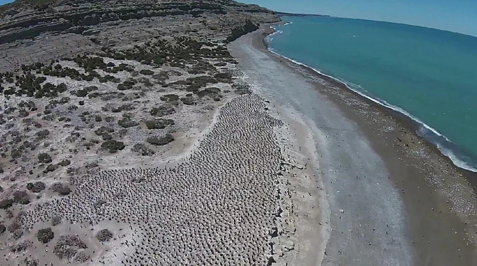 U videu koji je snimljen dronom, vidi se preko 5300 parova kormorana koji su se uredno poređali na plaži i sede na svojim jajima. To je oko 10.600 ptica, plus njihovi mladunci koji su zauzeli 2000 kvadratnih metara ove plaže.