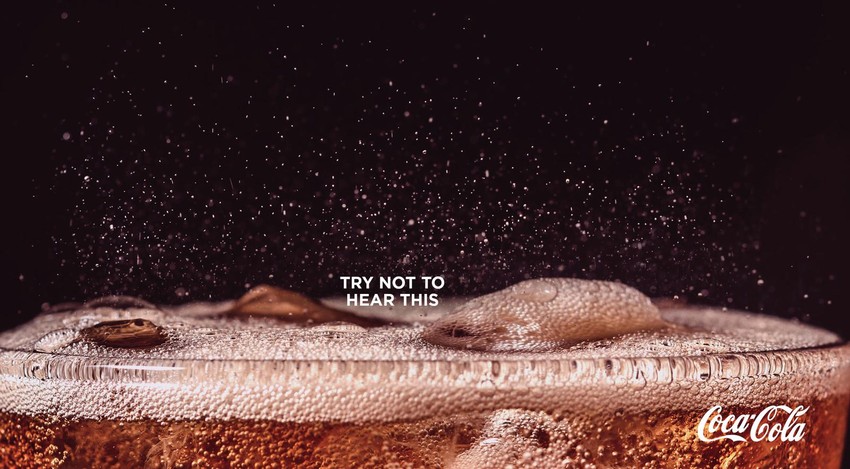 Ideja ove kampanje koja se našla u magazinima, novinama i na bilbordima širom Evrope, bila je da obožavaoci probaju da ne čuju i ne zamisle dobro poznate zvuke koji su povezani sa slikama koje gledaju - otvaranje Coca-Cola limenke ili flašice i čuvene mehuriće.