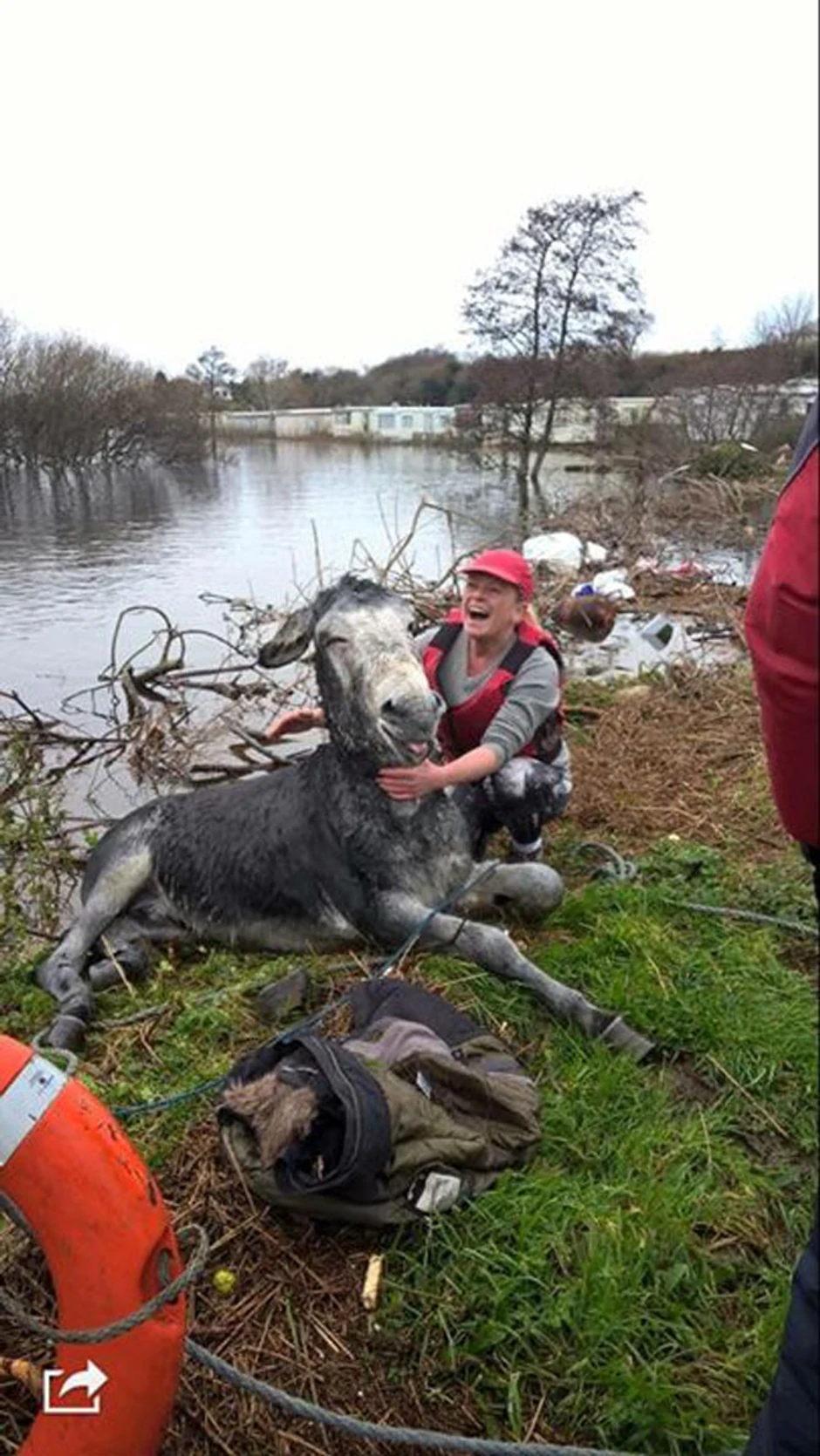Magarac po imenu Majk, koji živi u irskom gradu Kilorglinu, šetao je poljanom kao i svakog drugog dana, kada su monsunske kiše poplavile čitavo područje i umalo ga potopile. Srećom, osoblje centra za spasavanje životinja brzo je stiglo na lice mesta i odvuklo magarca na sigurno, a on im se zahvalio osmehom.