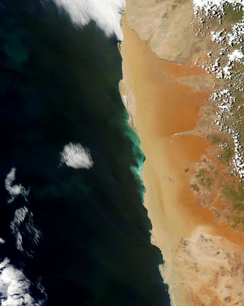 Krajem februara satelit američke svemirske agencije NASA snimio je zelenilo duž obale Namibije, ali tu boju nisu uzrokovali fitoplanktoni, već vodonik-sulfid, gas koji je smrtonosan čak i u malim količinama.