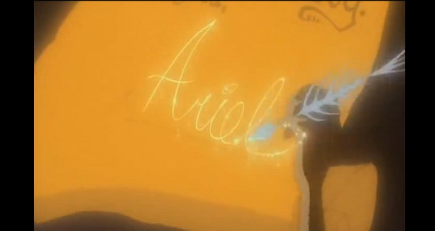 Arijel se pod vodom potpisala olovkom od riblje kosti. Osim toga, pisala je savršenim kurzivom i nije koristila "sirenski" jezik nepoznat ljudima – dakle, princ je mogao da razume ono što bi ona napisala.