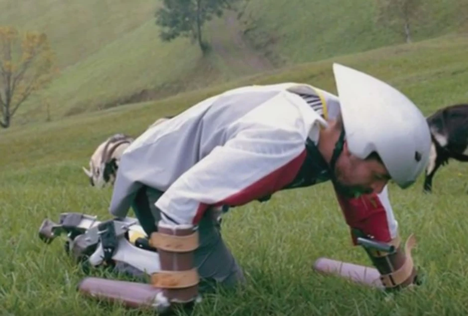Skoro godinu dana ovaj čovek se bavio pravljenjem posebnih proteza za noge, kako bi mogao da luta proplancima Alpa udobno na sve četiri.