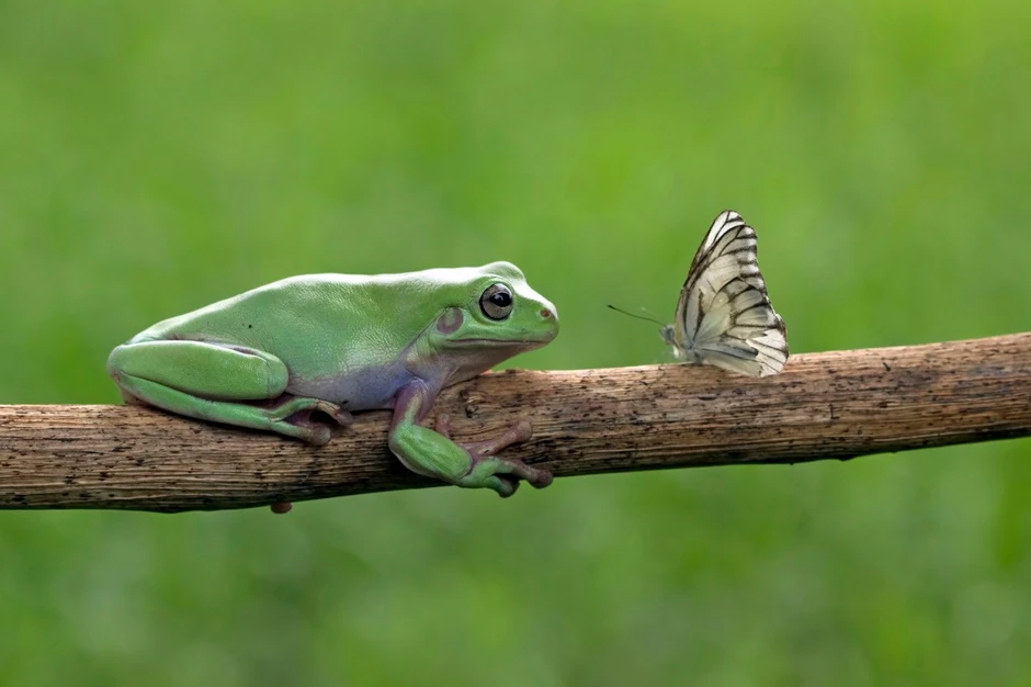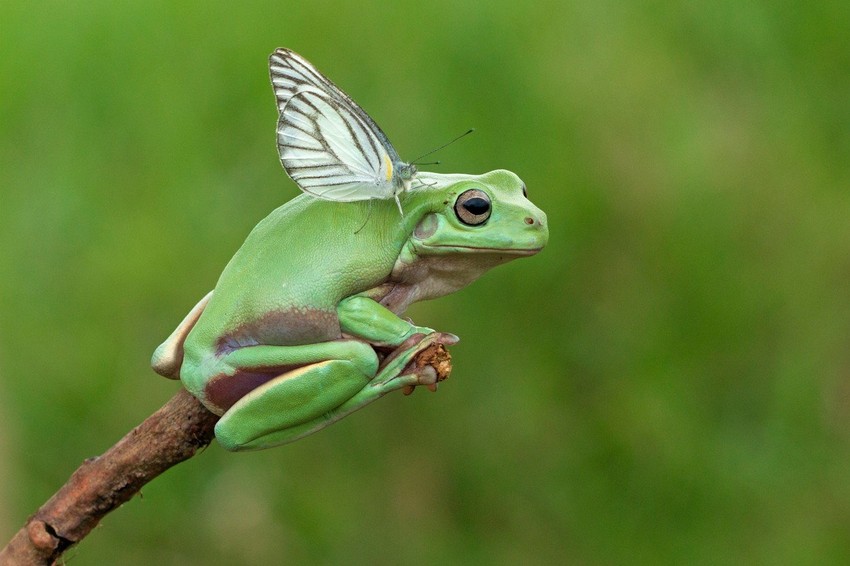 Afšin je fotografisao žabu i leptira koji joj se približio.