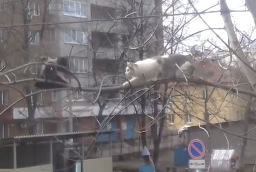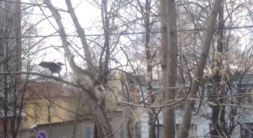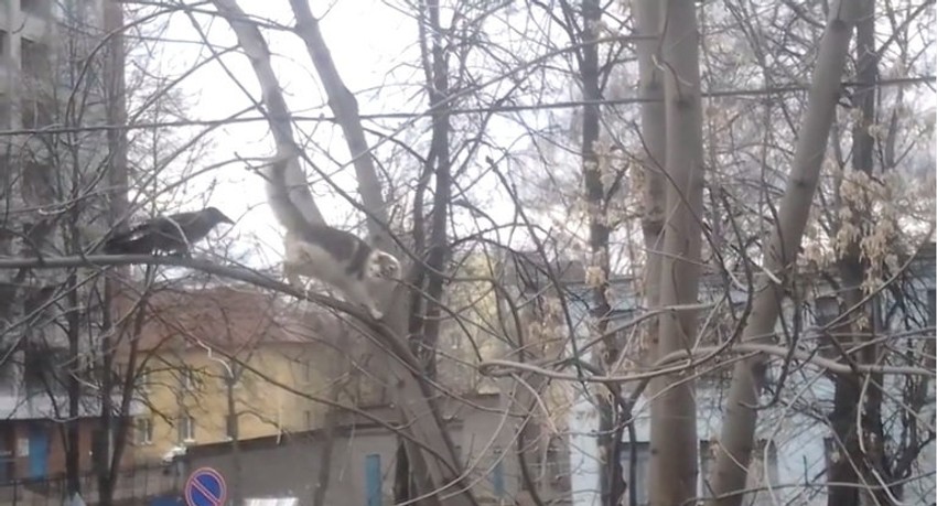 Mačka je krenula da lovi vranu, popela se za njom na drvo, ali ju je ptica nadmudrila.