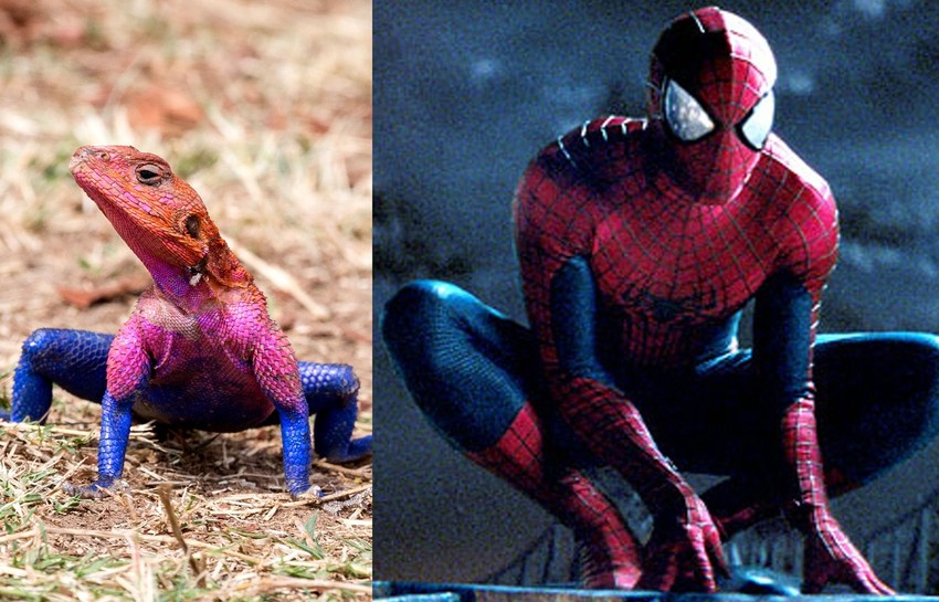 Ovaj gušter fotografisan u Keniji ima crvene i plave šare, iste kakve nosi čuveni "Spajdermen" na svom kostimu.