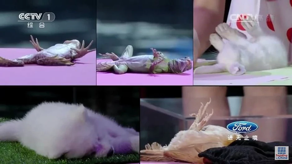 Ljudi su već kod guštera kojeg je izvrnula na leđa bili šokirani, a onda su usledili žaba, kokoška i zec, koje je isto tako uspešno hipnotisala.