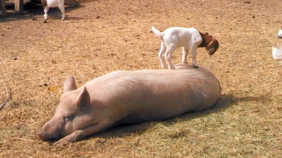 Da ni svinjama nije lako pokazuje ovaj snimak na kome je glavni akter jedno malo razigrano jare.