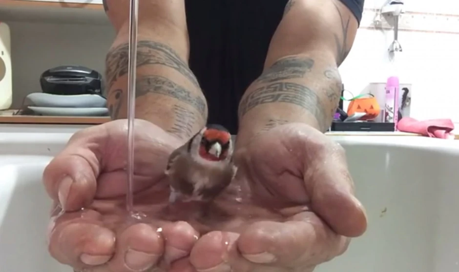 Odavno je poznato da ptice povremeno vole da uskoče u vodu ili stanu pod slavinu da se osveže. Ali ova ptičica ima poseban ritual u kom uživaju i ona i njen vlasnik.