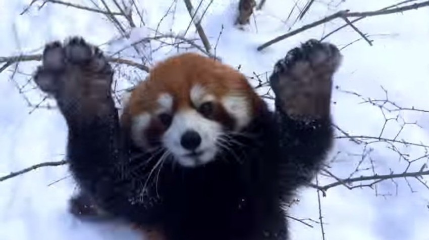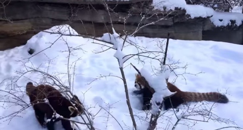 Crvene pande dvogodišnja ženka Lin i devetogodišnji mužjak Rover obožavaju sneg.