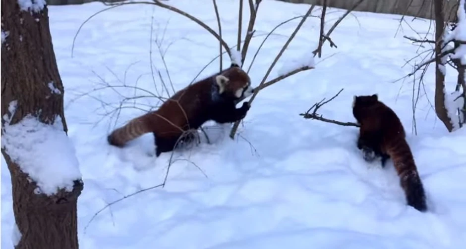 Radnica zoo vrta je snimila ove dve pande kako skaču i jure po snegu i pentraju