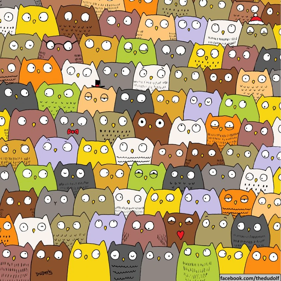 Na ovoj slici morate da pronađete mačku među sovama. Možete li?