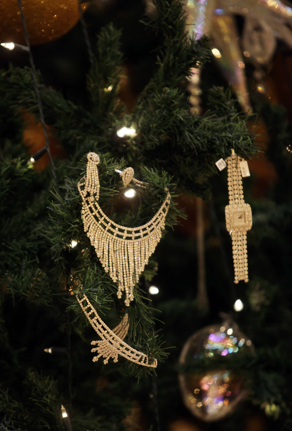 Dekorisano tradicionalnim srebrnim i zlatnim mašnama, ukrasima i belim svećicama, drvo je takođe ukrašeno i ogrlicama, minđušama i drugim nakitom u odgovarajućoj vrednosti.