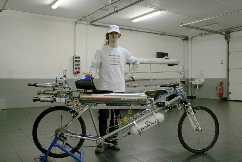 Fransoa Žisi je Francuz poznat po tome da već godinama vozi neobične bicikle. Naime, bicikli koje on vozi idu na raketni pogon, a Francuz je u trci protiv Ferarija F430 oborio svetski rekord, pošto je na biciklu išao brzinom od 333 km/h.