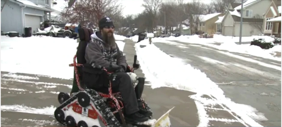 Džastin Anderson iz Nebraske, našao je način za čišćenje snežnih padavina, tako što je svoja invalidska kolica pretvorio u mašinu za čišćenje snega, koju koristi kako bi raskrčio puteve i prilaze u komšiluku.