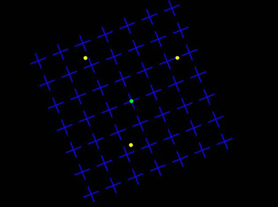 Ako se zagledate pažljivo u zelenu tačku u sredini dok se ostatak fotografije rotira, tri žute tačke na spoljašnosti će početi da nestaju. Ako pogled skrenete sa centra na stranu žute tačke će se ponovo pojaviti.