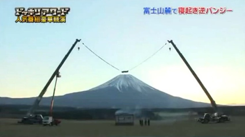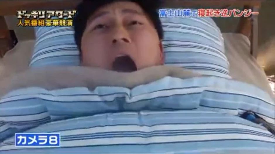 Dok je navodno spavao, čvrsto privezan za krevet, japanski komičar odjednom je katapultiran 50 metara u vis, kroz krov kolibe u podnožju planine Fudži.
