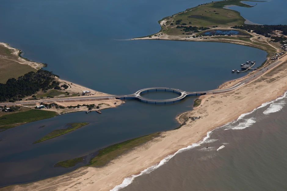 Kružni most koji spaja gradove Roču i Maldonado u Urugvaju dizajniran je sa ciljem da navede vozače da uspore i prepuste se lepoti prirode bar dok prelaze preko mosta.